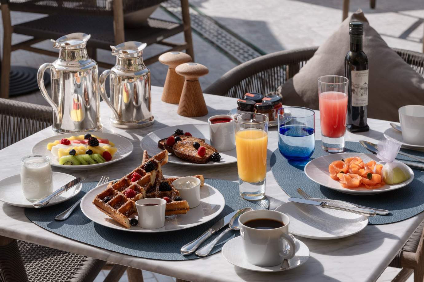 한편, 세계 유명 스타들의 휴양지였던 만큼 최고급 티 룸도 2곳이나 된다. 프랑스의 저명 파티시에이자 셰프인 피에르 에르메(Pierre Hermé)가 운영하는 ‘멘제 바이 피에르 에르메(The Menzeh by Pierre Hermé)’에서는 빙과류, 페이스트리를 비롯해 모로코 전통 민트 티, 이색적으로 창조한 ‘차이 칵테일’을 선보인다. 화려한 채색의 디자인은 프랑스 픽처레스크풍이다. 아울러 미식가들을 위한 럭셔리한 티 룸도 있다. 피에르 에르메가 창조한 메뉴인 프랑스 토스트와 거의 모든 종류의 케이크, 샌드위치, 마카롱으로 ‘프랑스식 애프터눈 티’를 즐길 수 있는 ‘티 룸 바이 피에르 에르메(The Tea Room by Pierre Hermé)’이다. 마라케시에서 프렌치 애프터눈 티를 즐기고 싶다면 이곳을 방문해 보길 바란다.