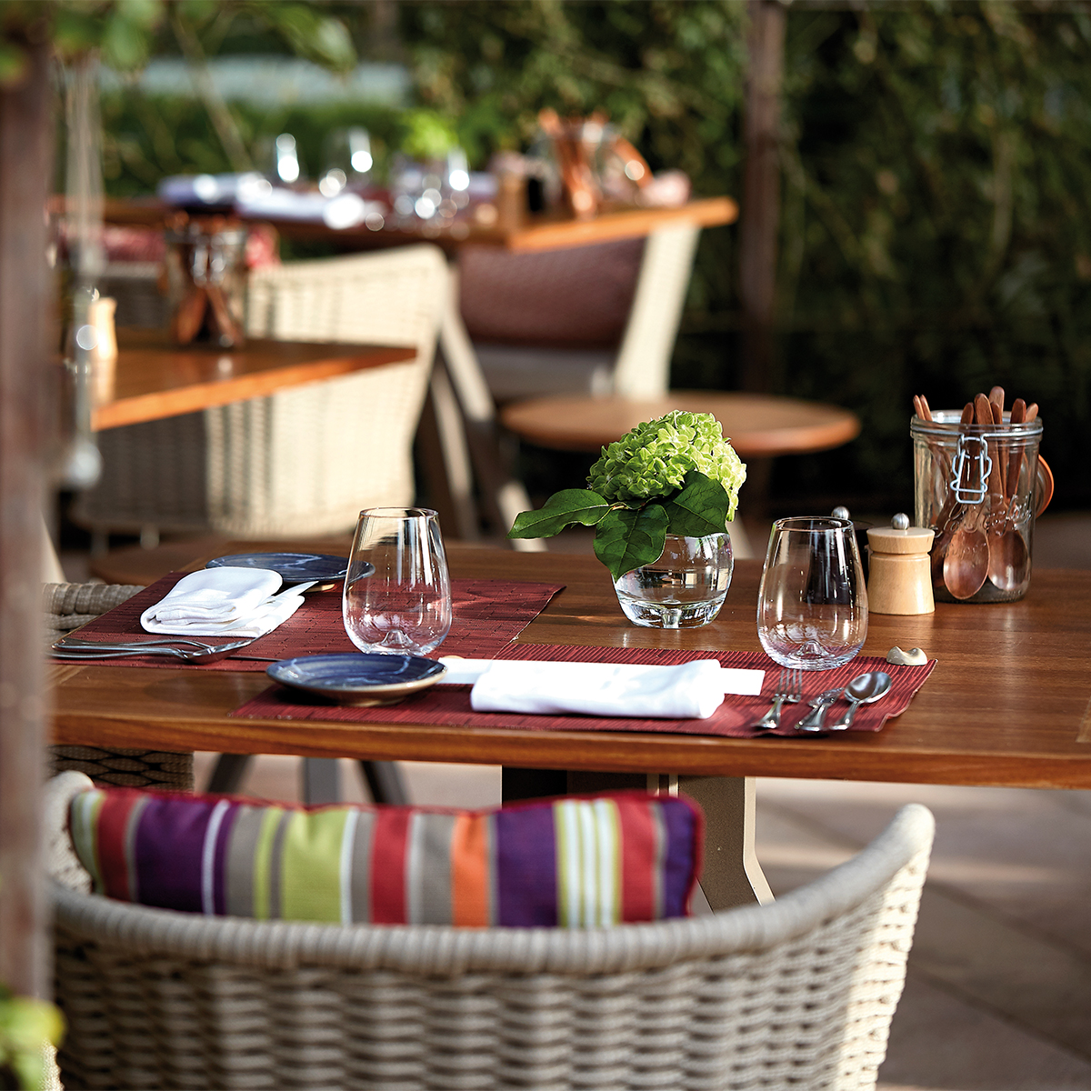 레스토랑 ‘이탈리안 바이 장 조르주(The Italian by Jean-Georges)’는 프랑스의 세계적인 셰프, 장 조루즈 본게리슈텐(Jean Georges Vongerichten)이 이탈리아식 간편 식당 ‘트라토리아(trattoria)’를 재창조한 곳이다. 모로코 전통 양식과 이탈리아의 가죽 제품들로 실내가 장식된 이곳에서는 이탈리아 정통 요리의 진수를 맛볼 수 있다. 허브를 사용한 연어 요리를 메인으로 시작해 장작으로 구운 피자, 이탈리아 가정식 파스타, 각종 허브와 향신료를 곁들인 이탈리아 시골 정식은 일품이다.