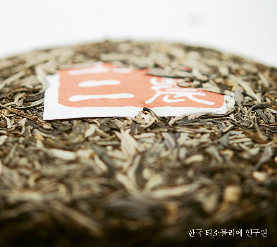 흑차의 일종인 보이차. 이 보이차는 떡모양의 보이병차이다.