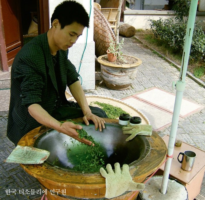 명명대에 처음으로 등장한 녹차의 열처리 작업인 초청(炒靑) 과정.