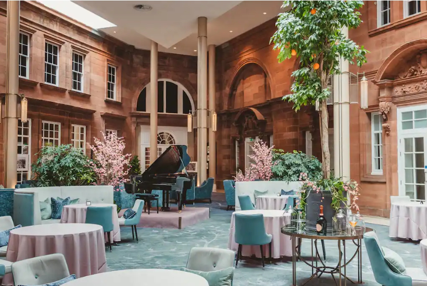 이 호텔의 ‘그랜드 홀(the Grand Hall)’은 스코틀랜드에서도 애프터눈 티의 명소이다. 입에 침이 돌게 만드는 별미의 페이스트리와 수제 케이크, 그리고 고형크림을 얹은 정통 스콘, 그리고 딸기잼과 함께 즐기는 영국 정통 애프터눈 티이다. 이때 티 애호가들이 전 세계의 티 전문 공급체로부터 광범위한 종류로 수입된 독특한 티 블렌드의 메뉴를 본다면 아마 감탄하지 않을 수 없을 것이다. 여기에 모엣 샴페인(Moet Champagne)까지 곁들인다면 더할 나위가 없다.