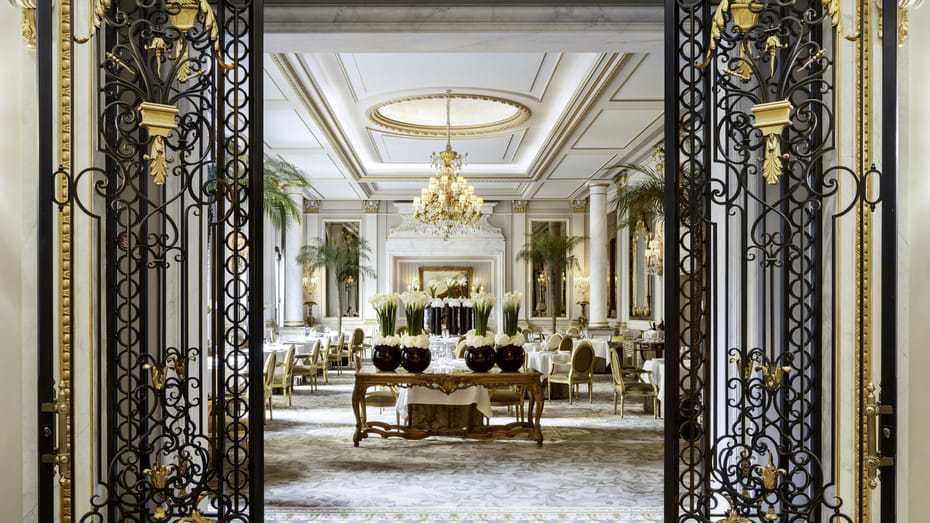 포시즌스 호텔 그룹의 5성급 럭셔리 브랜드인 이 호텔은 파리에서도 아르데코 양식의 주요 상징이며, <미쉐린 가이드> 3성이 1개, 1성이 2개인 레스토랑이 있어 프랑스에서도 최고의 다이닝을 자랑하고 애프터눈 티의 명소이기도 하다. 그 밖에도 풀장, 스파 등도 최고의 시설이다.