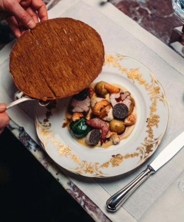 <미쉐린 가이드>의 스타 셰프인 장 앙베르가 약 250여 년이나 된 고대 레시피를 발굴하여 옛 프랑스 요리를 세기와 트렌드를 뛰어넘어서 재현해 선보이는데, 더욱이 현대 요리의 깊이는 살려 놓았다. 여기에 페어링을 중요시하는 전통에 따라 소믈리에가 큐레이팅한 리스트의 와인을 곁들인다. 미식가가 그냥 지나친다면 아마 경험의 큰 손실이 될 것이다.