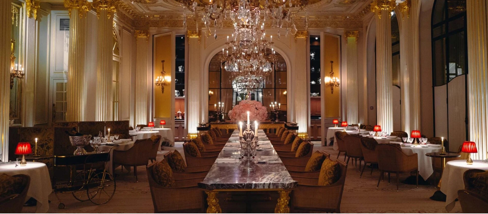 <미쉐린 가이드> 성급 레스토랑 ‘장 엥베르 오 플라자 아테네(Jean Imbert au Plaza Athénée)’에서는 런치와 디너로 미식의 세계에서 스펙터클한 모험과 잊을 수 없는 경험을 선사한다. 이 호텔의 들어서는 순간 중앙에 놓인 이탈리아 브레치아 대리석의 거대한 ‘로열 테이블(Royal Table)’을 중심으로 위로는 보석처럼 화려하게 빛나는 샹들리에, 더 위로는 황금빛 천장의 실내 디자인이 고객을 맞이하는 가운데 프랑스 전통 요리의 기원을 찾아가는 과거로의 시간 여행이 펼쳐진다.