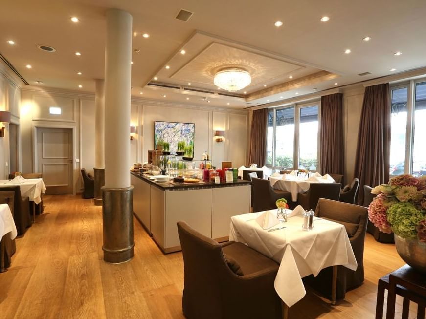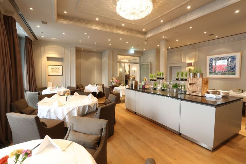 ‘레스토랑 프랑세(Restairant Français)’에서는 <미쉐린 가이드> 1성(★), <고미요> ‘17/20’의 셰프인 패트릭 비트너(Patrick Bittner)가 프랑스, 독일의 요리를 예술적으로 선보이는데, 여기에 500종의 와인 리스트에서 소믈리에가 페어링하는 서비스도 유명하여 와인 애호가들에게 이곳은 버킷리스트일 것이다. 특히 여름철에는 야외 테라스에서 사람들과 함께 도심의 광경을 바라보며 ‘하이 티’도 즐길 수 있어 티 애호가들에게도 더욱더 매력적인 장소이다.