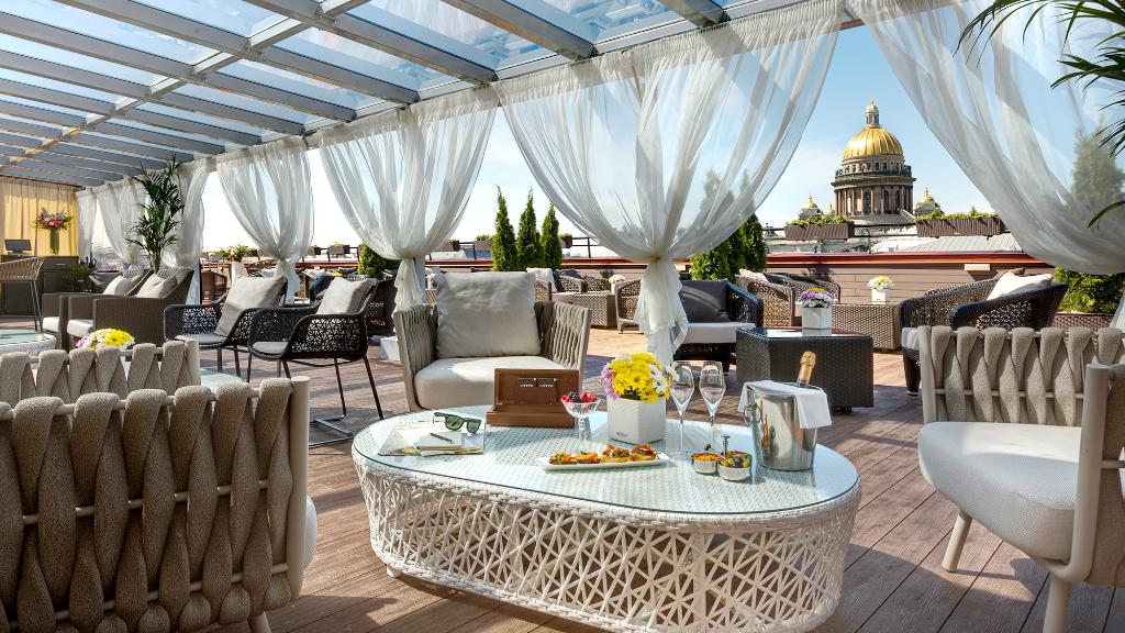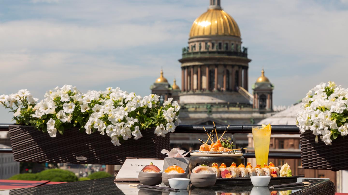 옥상 바인 ‘엘 테라사(L Terrasa)’는 성 이삭 성당을 비롯해 역사적인 도시의 야경을 바라보면서 광범위한 와인 리스트와 다양한 칵테일들을 즐길 수 있는 여유로운 공간이다. 특히 셰프 아나톨리 이바노프(Anatoly Ivanov)가 선보이는 한국의 전통 디저트인 ‘빙수’도 맛볼 수 있다. 와인, 칵테일의 애호가들은 이곳을 방문해 경험해 보길 바란다.