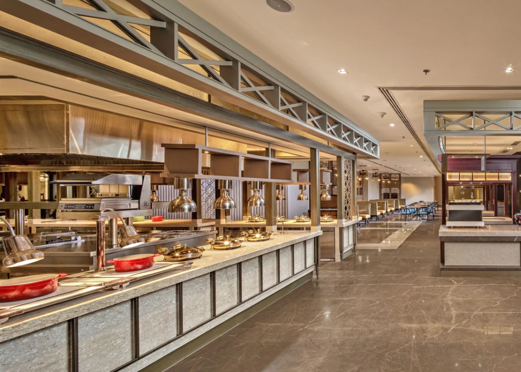 멀티 퀴진 레스토랑인 ‘그랜드 마켓 파빌리언(Grand Market Pavilion)’은 콜카타의 유명 시장인 ‘호그 마켓(Hogg Market)’을 벤치마킹하여 6개의 극장식 식당 룸과 3개의 뷔페를 운영해 그야말로 생동감이 넘치는 곳이다. 콘셉트가 소위 ‘호텔 속 먹거리 시장’이다.