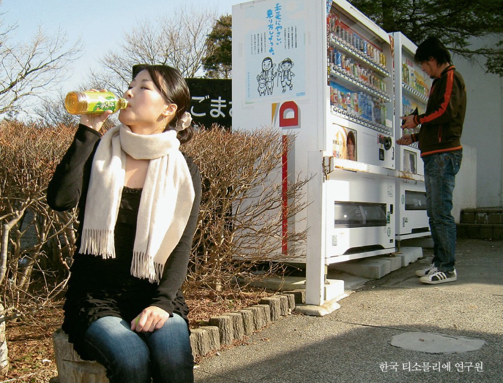 일본에서 티를 마시는 일상의 모습. 녹차, 홍차, 우롱차 등을 자판기에서 즉석으로 뽑아 마신다.