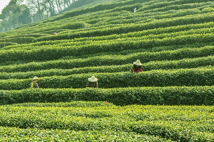 ● 손으로 찻잎 따기