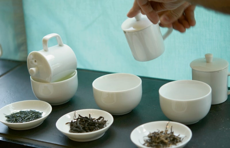 티 테이스팅 세트는 소량의 티를 우릴 때 최상의 조건을 유지할 수 있도록 해 준다. 또 연속적으로 수많은 종류의 티를 마실 수 있도록 하고, 서로 다른 종류의 티들 사이에 향미의 정확한 비교도 가능케 한다. 컵과 위에 덮는 뚜껑은 포개면 단단히 밀폐된다.